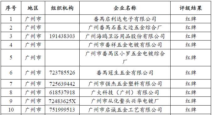 广东省重点污染源环境保护信用评价结果环保不良企业(广州市-红牌)