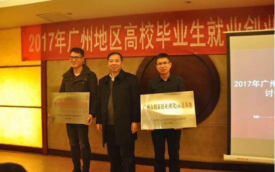 会议还介绍了第六届“赢在广州”大学生创业大赛筹备情况,举办2016年市创新创业(孵化)示范基地授牌仪式。市劳动就业服务管理中心主任张宝颖通报将广州大学创刻空间创业(孵化)基地、广州大学华软创业(孵化)基地认定为“广州市创新创业(孵化)示范基地”,市人力资源和社会保障局冯星树副巡视员为两所高校创业基地授予牌匾。