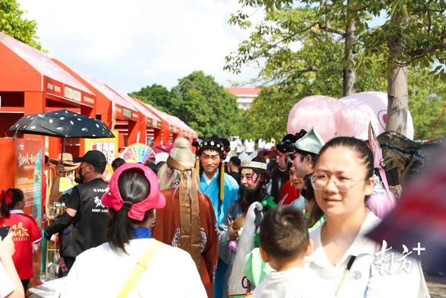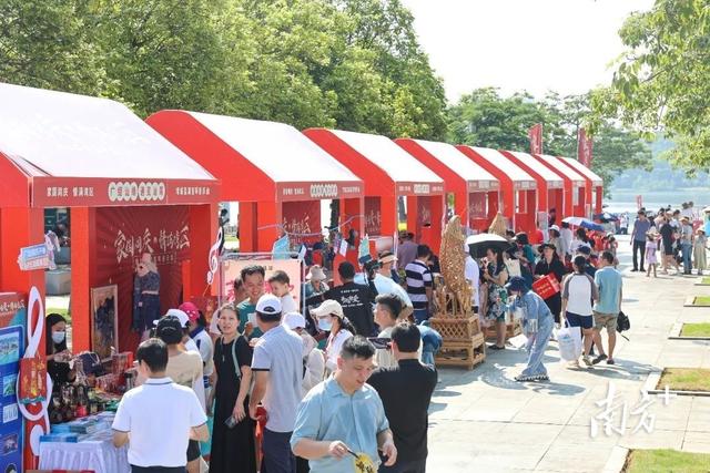 此外,现场还设立摊位区,展示增城和汕尾两地的特色农产品、文创产品、非物质文化遗产等,并提供版画体验、舞狮表演、品茶等活动,让市民玩转中秋国庆假期。