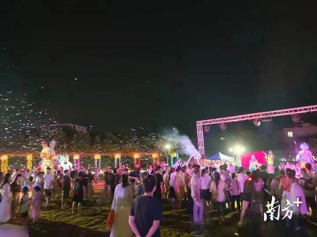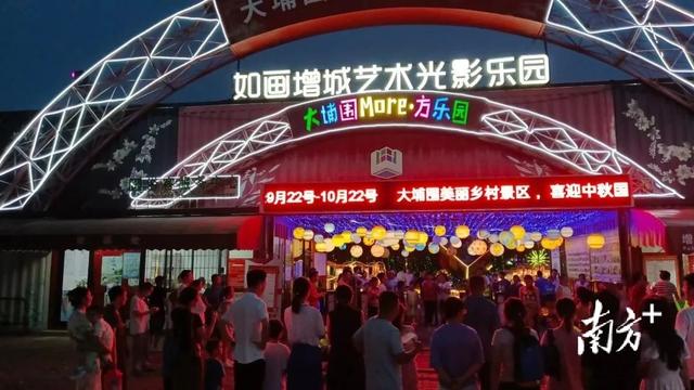 除了传统的活动场景,沉浸式夜游也成为新的关键词。如增江街大埔围花海景区举行的星光不夜城活动,不仅有浪漫的灯光秀,还可以欣赏到绚烂的烟花,观看特色的表演,体验马术、机动游戏等,欢乐不停歇。