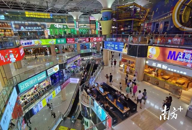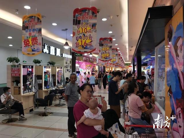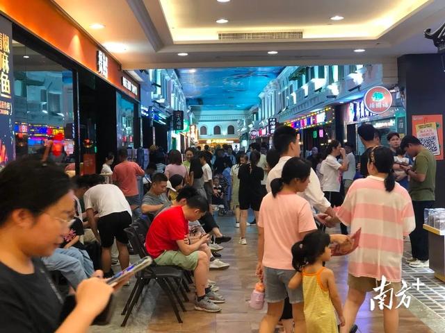 在新塘镇金海岸广场商圈,假期客流量显著增加,这里进驻了大型超市、美食餐饮、品牌服饰、书城、影院、恐龙乐园等业态,成为周边群众的“打卡点”之一。