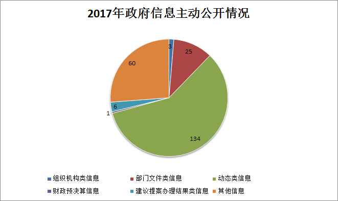增城区人民政府增江街道办事处2017年全年主动公开政府信息229条,其中:1.组织机构类信息3条;2.部门文件类(包括规章、.规范性文件等)信息25条;3.动态类信息134条;4.行政职权类信息(包括行政审批、执法等)0条;5.财政预决算信息1条;6.建议提案办理结果类信息6条,办复率100%;7.其他信息60条。