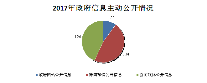在主动公开信息工作中,通过不同渠道和方式公开政府信息情况:政府网站公开信息29条,微博微信公开信息134条,新闻媒体公开信息124条。