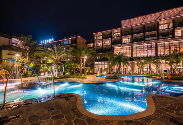 广州合汇温泉酒店,邻近增城4A级景区白水寨和石马龙湿地公园,傍水而建的广州合汇温泉酒店,以“水的多元形态”为设计主题,同时提出“二元性”的概念,透过酒店装修和家私材质的碰撞,从而达到二元对立到形态互补的和谐共处。酒店拥有209间不同风格及景观的精致客房,每间房均配有独立温泉泡池,另配有大堂吧、楼顶酒吧、全日餐厅、西班牙特色餐厅、中餐厅、500平方宴会厅以及2个多功能厅,温泉泡池,SPA,户外泳池,健身房、儿童俱乐部等。酒店团队秉乘品牌一贯的热情好客的准则,以个性化的优质服务,为您打造难忘的尊贵体验,是您在广州休闲旅游或亲子度假的不二之选。
