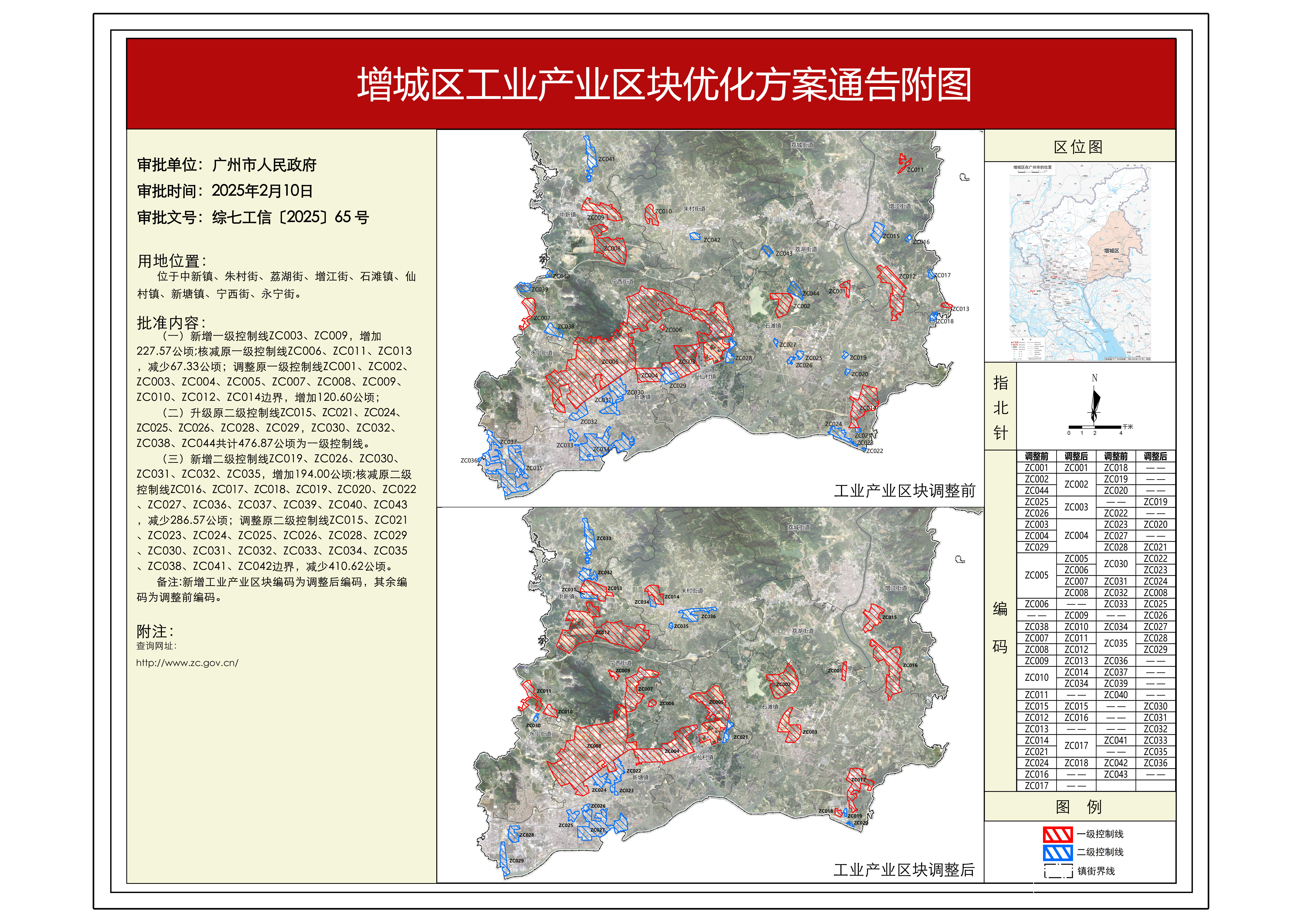 根据《广州市工业产业区块管理办法》(下称《管理办法》),我区组织编制了《增城区工业产业区块优化方案》, 该优化方案经广州市人民政府批准,自批准之日(2025年2月10日)起生效。