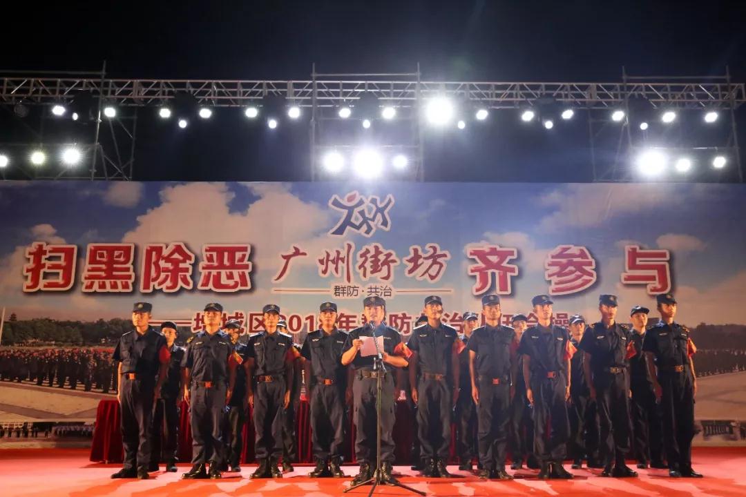 在当前全国上下正在深入开展扫黑除恶专项斗争背景下,我区在增城广场举行了以“扫黑除恶 广州街坊齐参与”为主题的第三届群防共治队伍会操表演,11支镇街群防志愿队伍和6支保安、物业队伍在国庆佳节前给广大的市民群众朋友献上了精彩的表演。